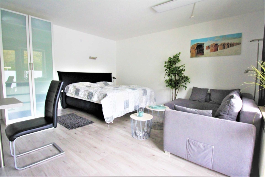 Der großzügige und helle Wohn- und Schlafbereich mit direktem Zugang zur eigenen Terrasse schafft eine gemütliche Wohlfühlatmosphäre. Dank der Erlaubnis zur Ferienvermietung ist die Wohnung sowohl als Kapitalanlage mit gesicherter Auslastung als auch zur Eigennutzung bestens geeignet.